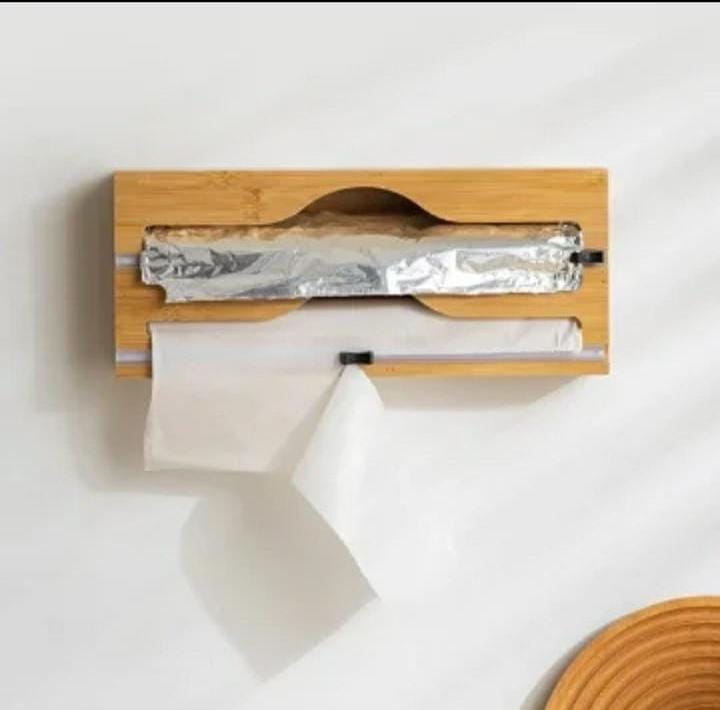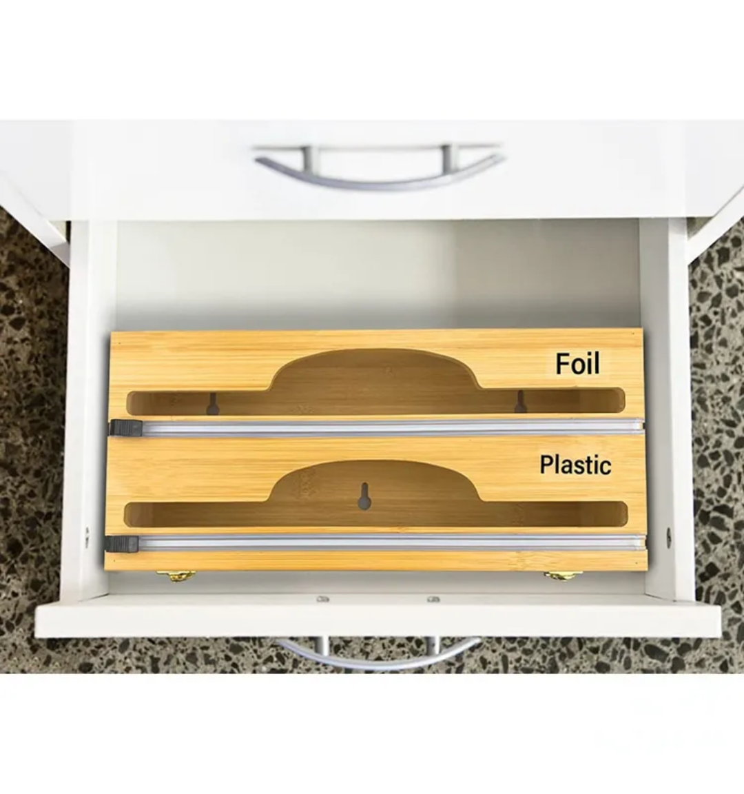 Bamboo kitchen wrap dispenser with foil && cling film cutter