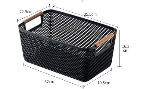 Stylish and durable storage basket made from high-quality hard plastic with smooth wooden handles for easy carrying. Ideal for organizing clothes, toys, toiletries, groceries, or household items. Its modern minimalist design fits seamlessly into any home, office, or laundry room décor. Lightweight, sturdy, and easy to clean — the perfect blend of practicality and style for everyday storage needs