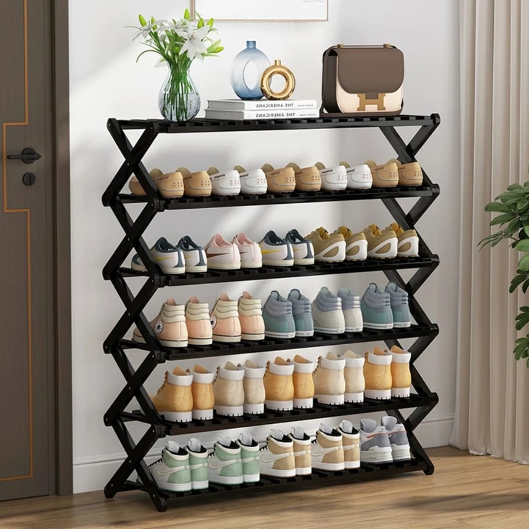 Thickened 6-Tier Black Bamboo Shoe Rack stand / Multifunctional Organizer