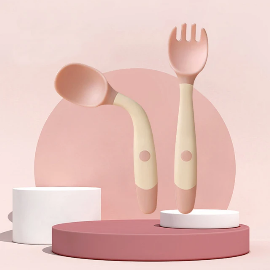 2 Pcs Baby Bendable Silicone Spoon & Fork Set