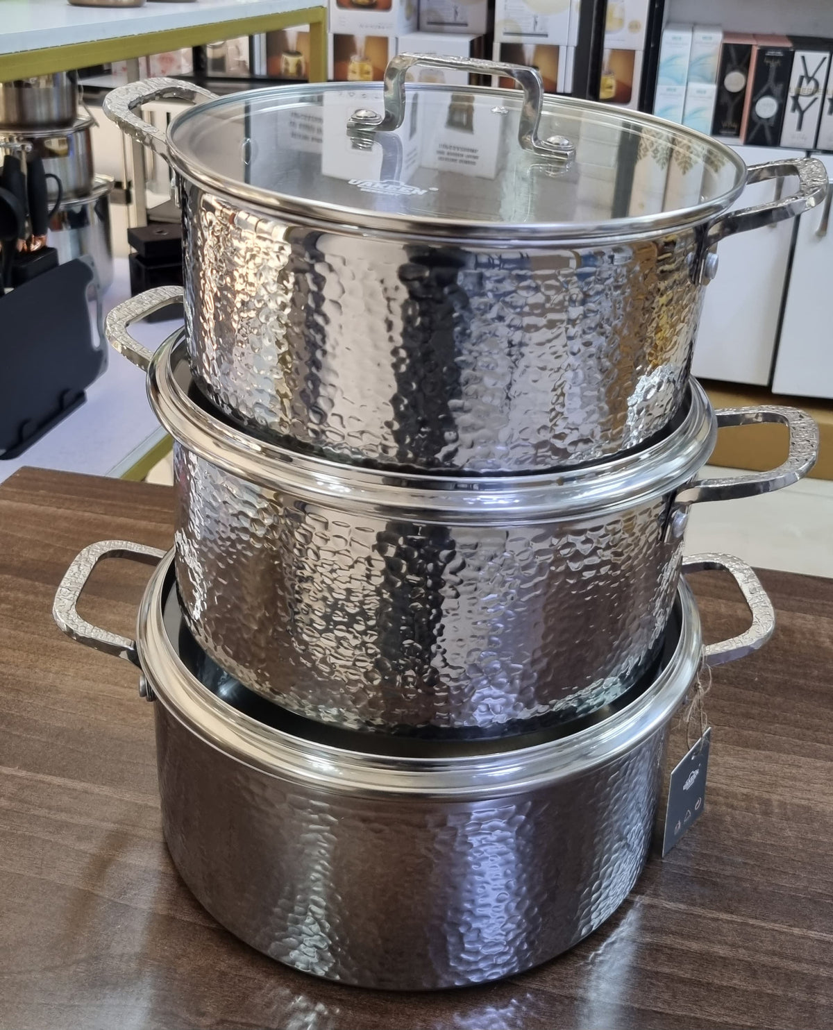 • Triple-layer stainless steel construction with hammered design
