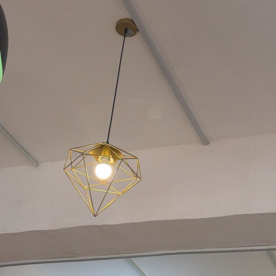 Bring timeless elegance to your space with the Diamond Gold Cage Pendant Lamp – PL 8062-GO. Designed with a stylish geometric metal cage and a luxurious gold finish, this vintage-inspired pendant light adds a warm and sophisticated touch to dining areas, kitchens, living rooms, or cafes. Its durable aluminium construction and classic E27 base make it both a beautiful and practical lighting solution for modern and rustic interiors.