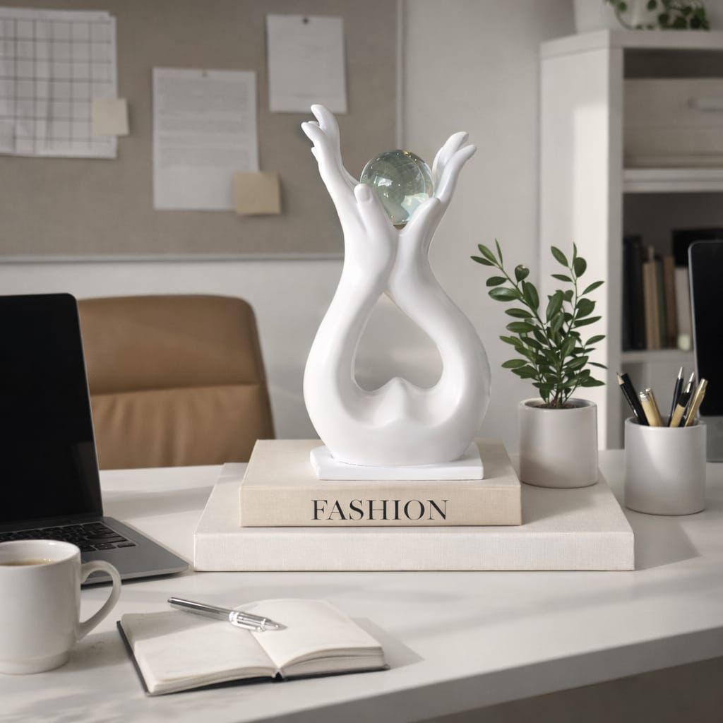 Elevate your interior design with this handmade abstract ceramic sculpture. Perfectly crafted for modern aesthetics, it adds a striking visual element to your coffee table, TV stand, office desk, or console. Its unique abstract design makes it a versatile décor piece that complements contemporary, minimalist, or artistic spaces. Ideal for gifting or personal collection, this sculpture brings elegance and creativity to any setting.