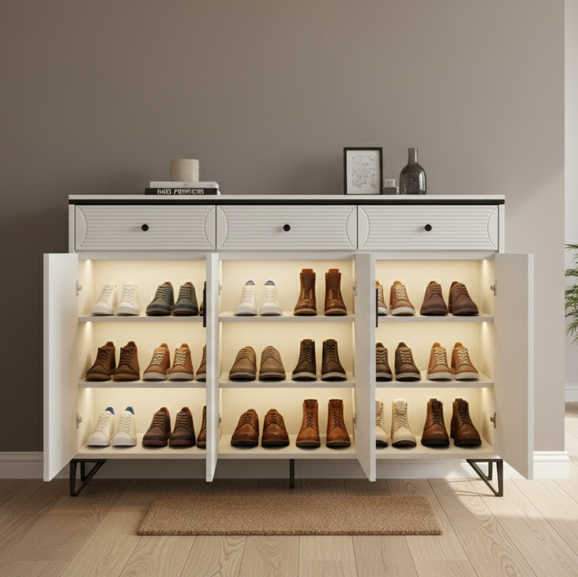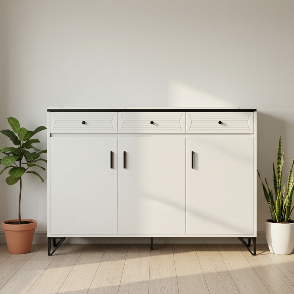 Organize your home efficiently with this multi functional shoe rack designed for versatile storage and everyday convenience. Built to accommodate a wide range of footwear, including men’s and women’s shoes as well as slippers, it offers a practical solution for maintaining a neat and clutter free space. Its spacious structure and clean design make it suitable not only for entryways but also for corridors, living rooms, and dining areas where it can double as a sideboard or buffet storage cabinet. With a strong build and generous capacity, this piece combines functionality with a refined storage solution for any home.