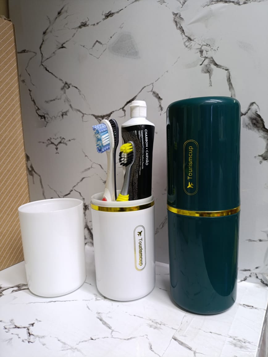 Organize your oral care essentials with this Nordic portable toothbrush and toothpaste holder. Featuring a large capacity and an upper part that doubles as a cup, it is perfect for travel or home use. Made from high-quality ABS, it is durable, lightweight, and easy to clean. Available in green.