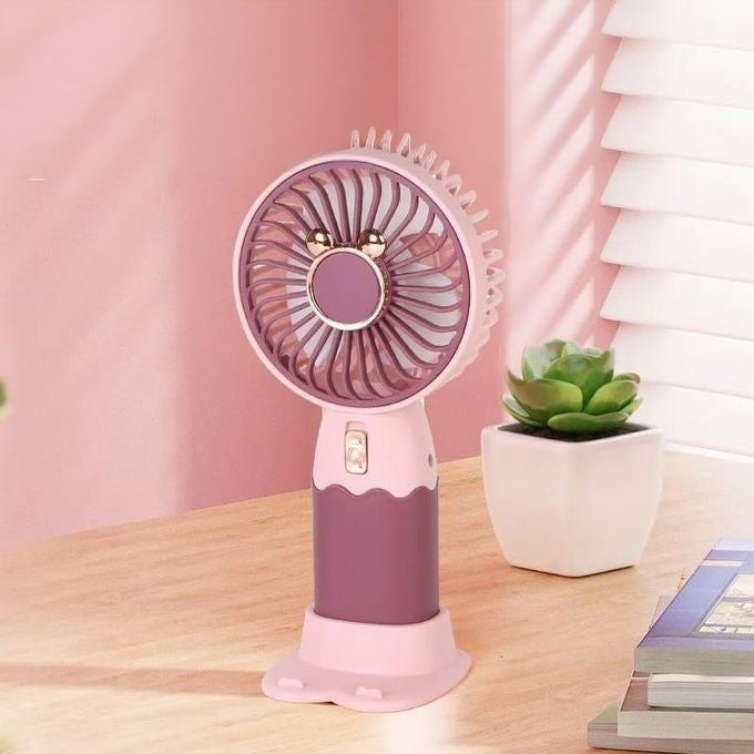 Stay cool on the go with this rechargeable portable handheld fan. Designed for convenience and performance, it delivers strong wind while remaining quiet and energy-efficient. Lightweight and easy to carry, it is perfect for travel, office, or outdoor use. Available in green, white, and pink.