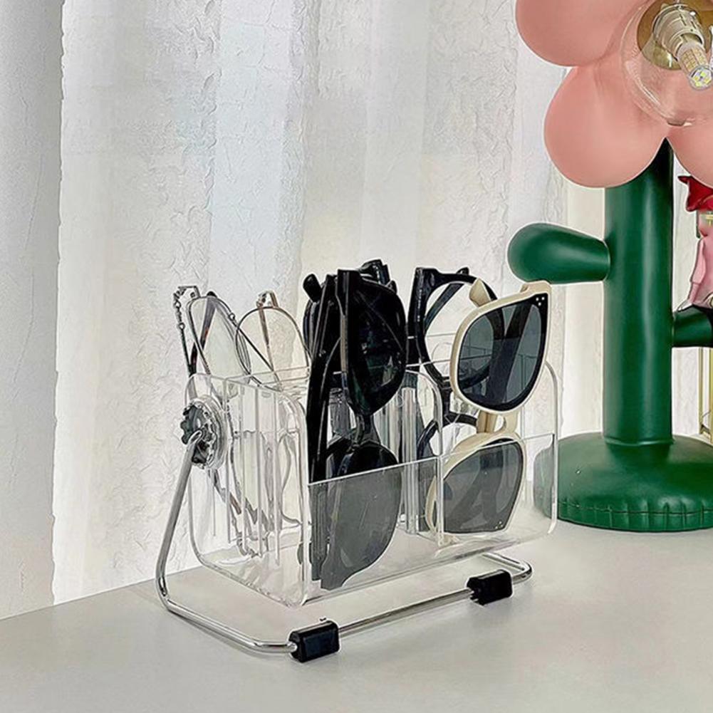Transparent Acrylic Storage Box Rotating Stationery Storage Box 6-compartment Desktop Sundries Organizer