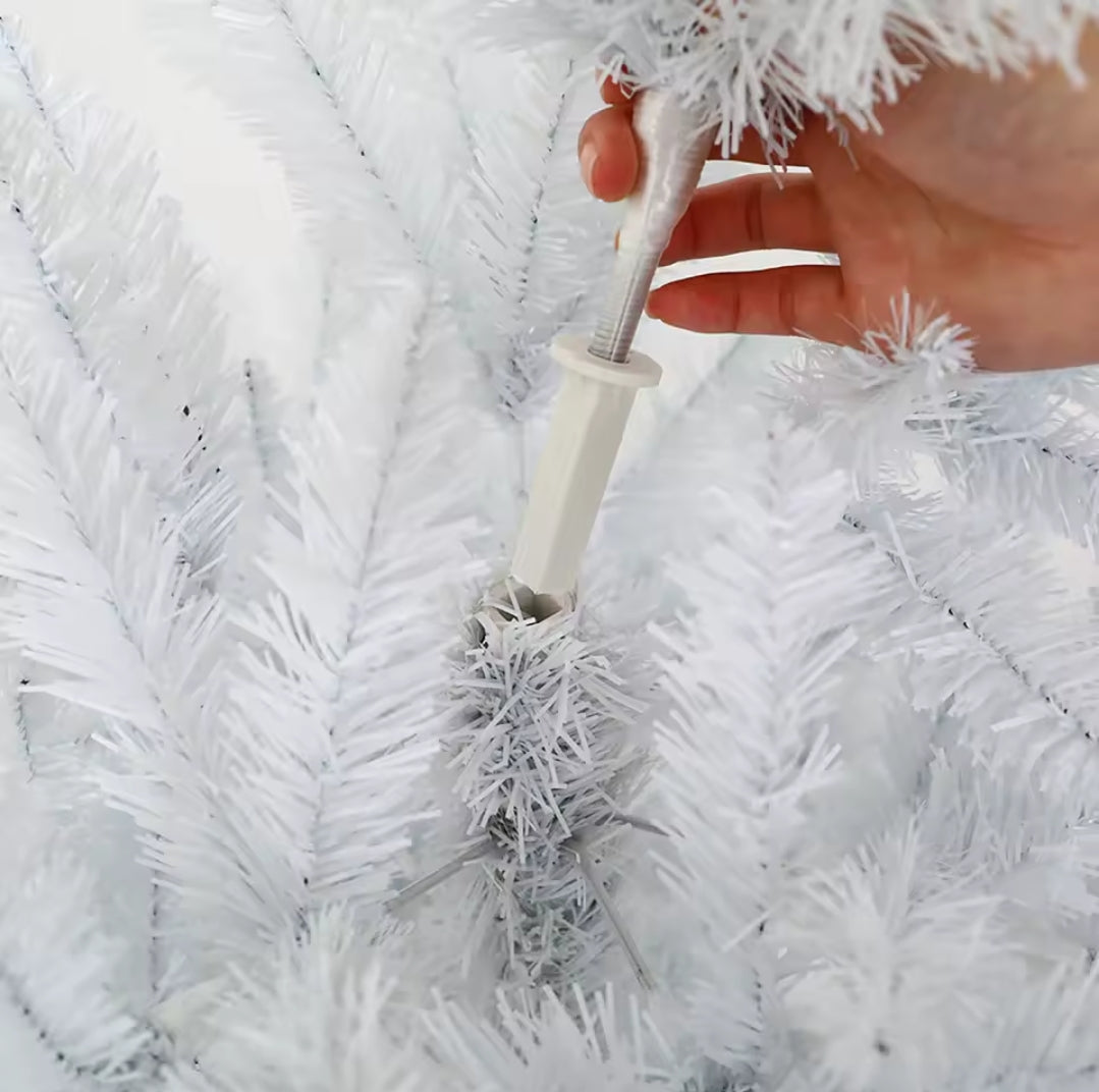 This artificial Christmas tree features a full white design that creates a snowy winter wonderland look.