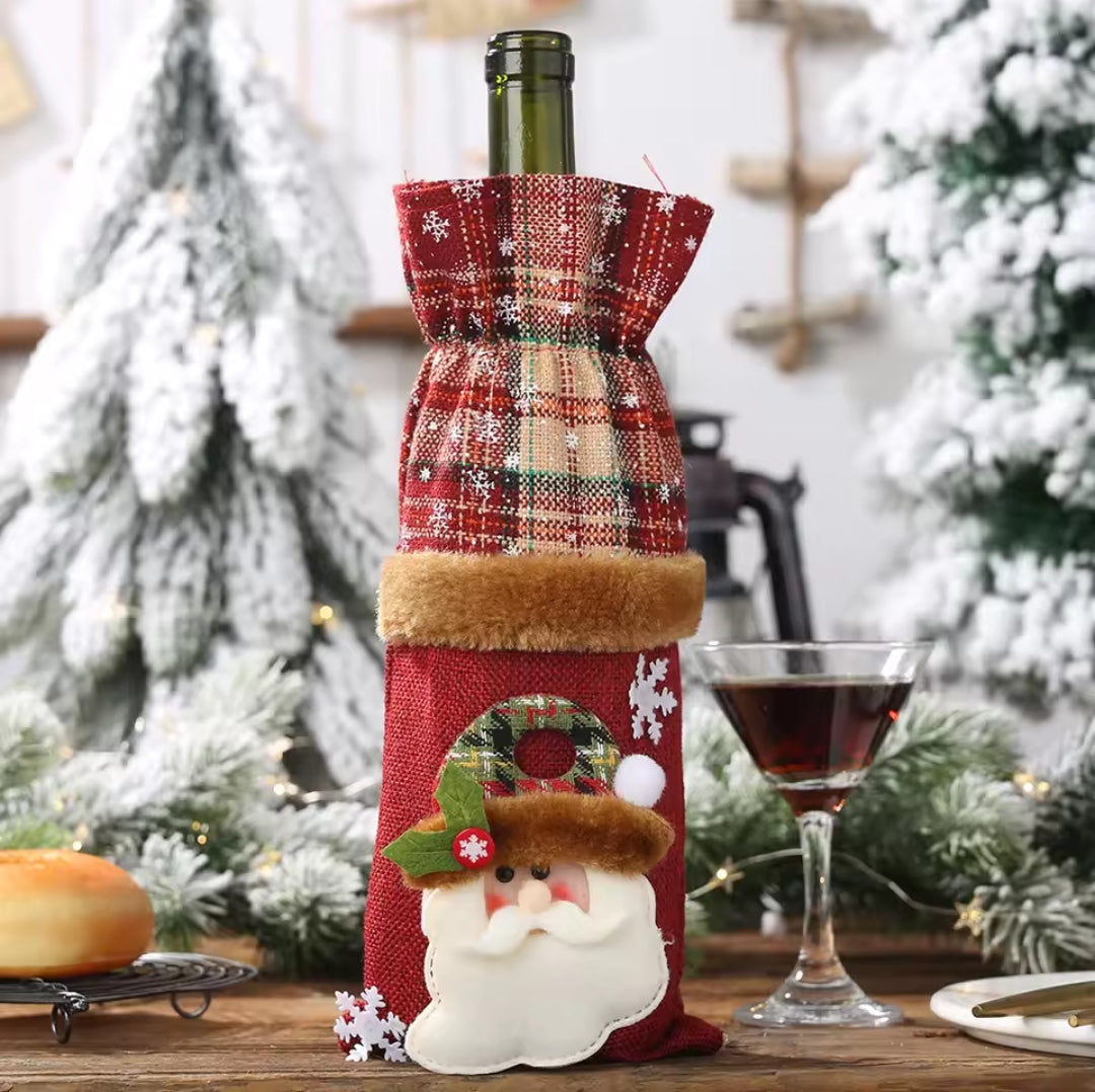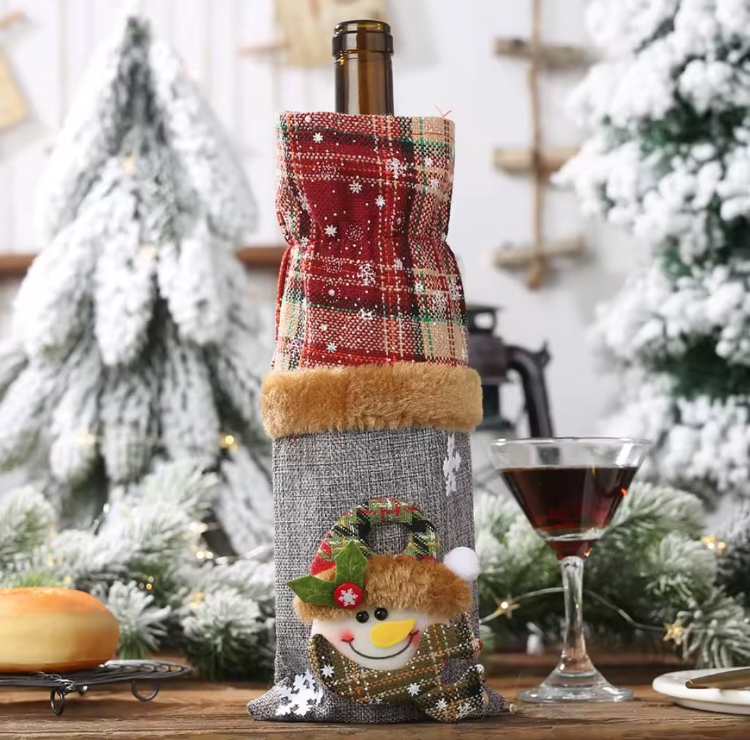 Holiday-themed wrap designed to dress up wine and champagne bottles.